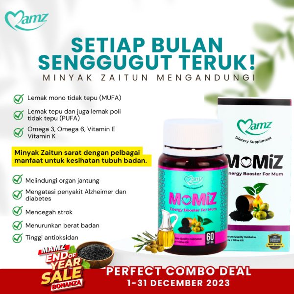 Dalam Momiz ni ada minyak zaitun dan habbatus sauda yang boleh bekalkan zat dan tenaga untuk badan kita.
