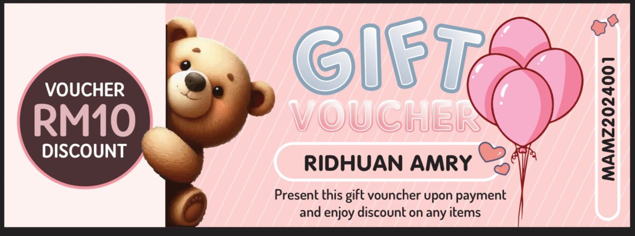Tahniah! Anda layak menerima voucher bernilai RM10 ini secara PERCUMA sebagai tanda penghargaan kepada ibu-ibu yang mempercayai Mamz.
